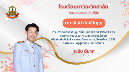โรงเรียนกาวิละวิทยาลัย ขอแสดงความชื่นชมยินดีกับคุณครูที่ได้รับรางวัลจากการประกวดและคัดเลือกผลงานสถานศึกษาที่มีการปฏิบัติเป็นเลิศ (Best Practice) การยกระดับสมรรถนะความฉลาดรู้ของผู้เรียน ปีการศึกษา 2568